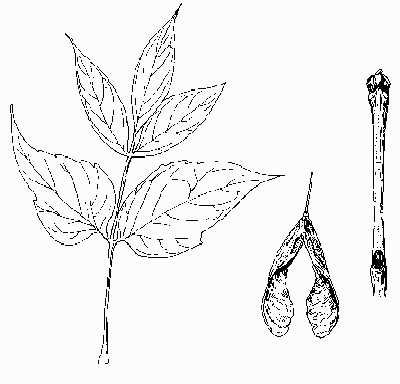 FRUIT: Wings about 1½”-2″ long, parallel or in-curved, borne in drooping clusters. Fruits mature in September but fruit-stalks persist far into winter.