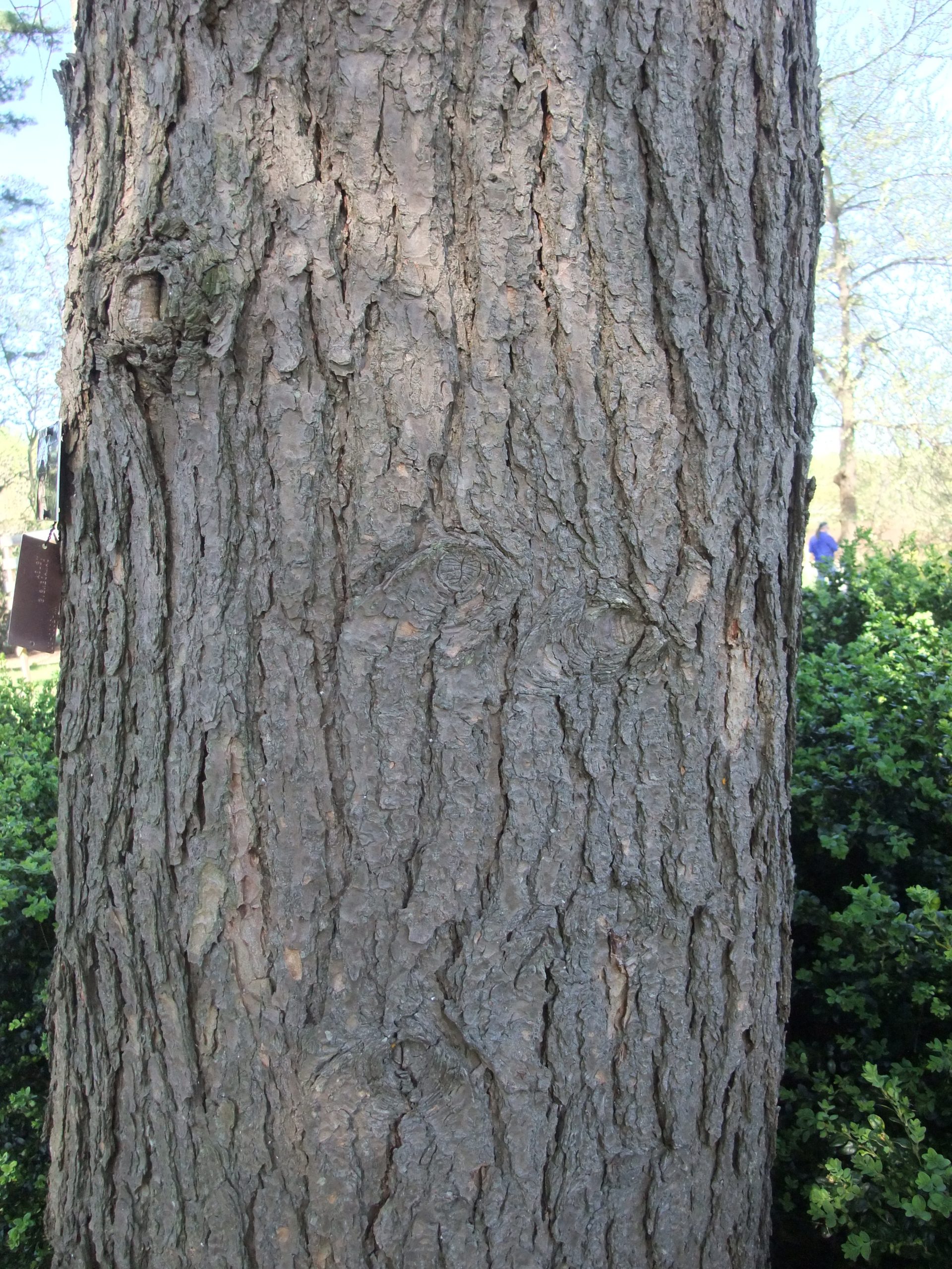 BARK: Flaky on young trees, gray brown to red brown, thick and roughly grooved when older.
