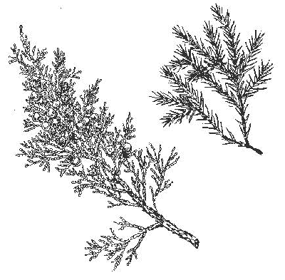 GENERAL: A slow growing and long-lived tree, to 40′ high. Red cedar is adaptable to a variety of wet or dry conditions. It is common in abandoned farm fields in the southern tier counties and on rocky bluffs. The wood is used chiefly for fence posts and moth- proof chests. Cedar wax-wings and other song birds and game birds eat the fruits.