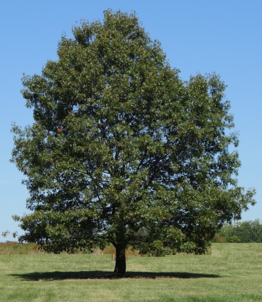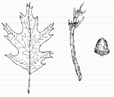 GENERAL: A dominant forest tree throughout the state growing to 90′ in moist to dry soils. Deer, bear, and many other mammals and birds eat the acorns. It is often planted as a shade tree. The hard strong wood is used for furniture, flooring, millwork, railroad ties and veneer. The “red oak group” includes all oaks with bristle-tipped leaves and acorns ripening over two seasons.