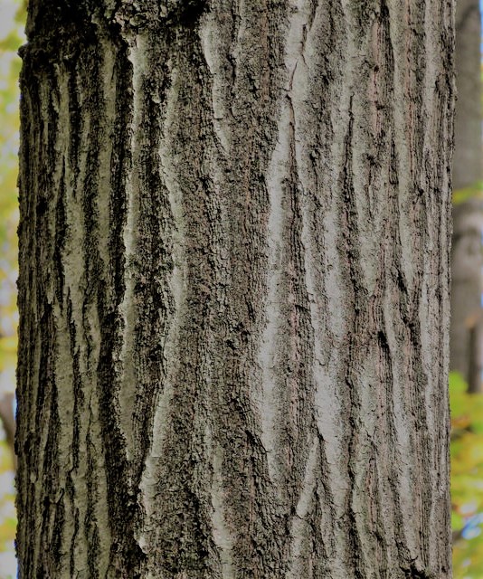 BARK: Smooth and greenish-brown or grey, maturing to dark grey or nearly black and is divided into rounded ridges.